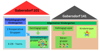 Die Kinderkrippe Gabersdorf (Standort Gabersdorf 141) führt eine Gruppe und ist seit September 2025 in Betrieb. Bis zu 14 Kinder (Gruppengröße ist vom Alter der Kinder abhängig) können diese Gruppe besuchen.